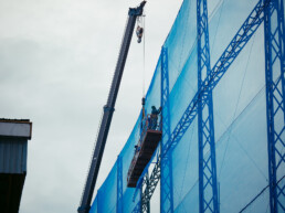 Idéals pour les chantiers de construction, nos filets à débris avec bandes de boutonnières sont conçus pour les échafaudages et pour les chutes à débris.