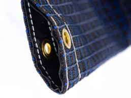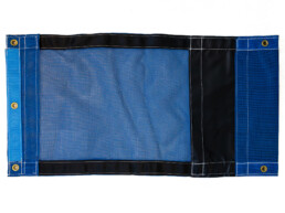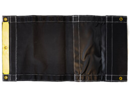 Conception : fourreau (passe-pôle) renforcé de vinyle PVC pour assurer résistance au frottement de la barre d’attachement. Oeillet aux 10’’